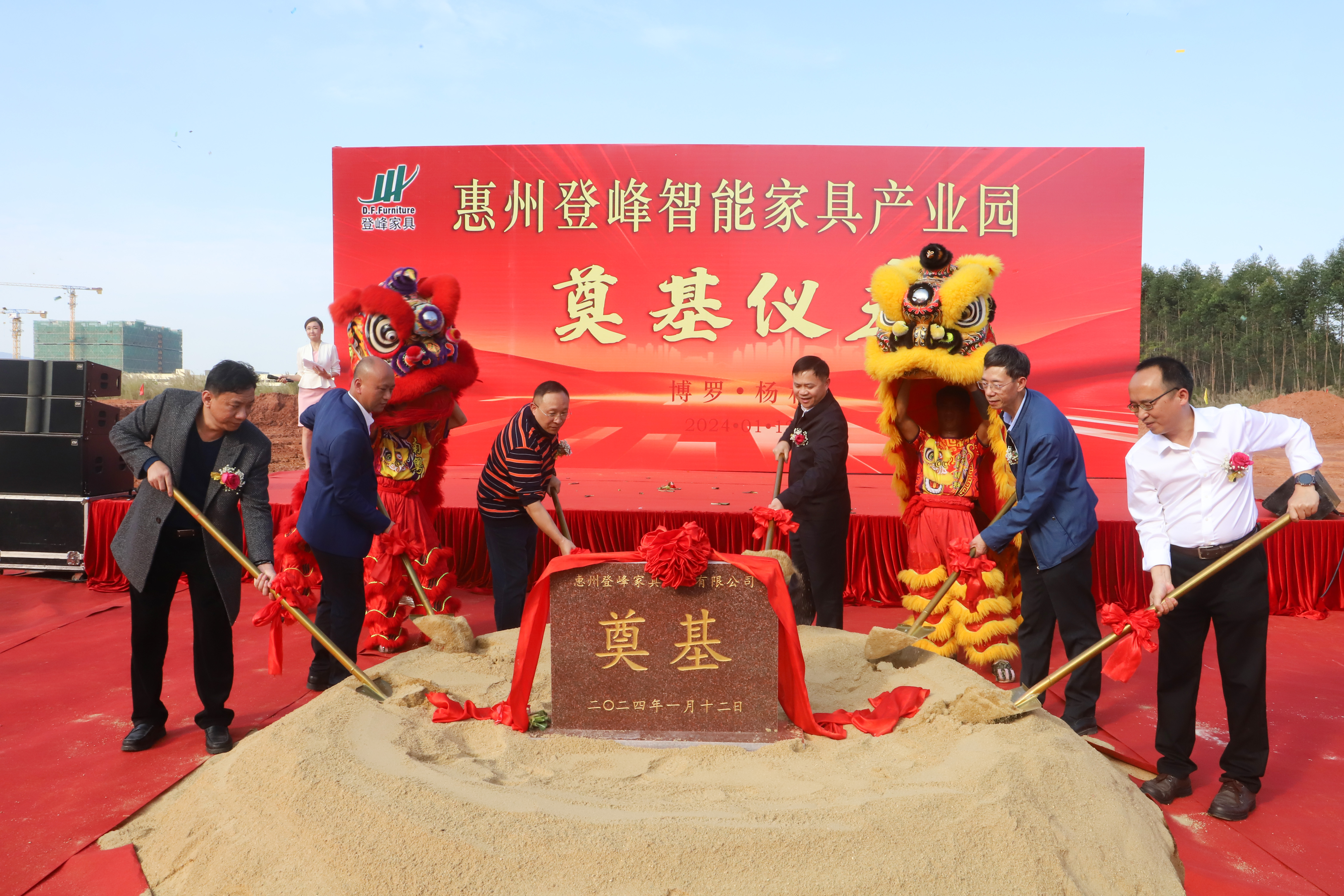 1月12日,惠州登峰智能家具產業園項目在楊村鎮舉行奠基儀式。鎮黨委書記鄧田芳、市建設工程質量檢測中心主任黃鐘煥、惠州市登峰家具制造有限公司董事長陸山,以及施工、監理、設計單位負責人等出席儀式。