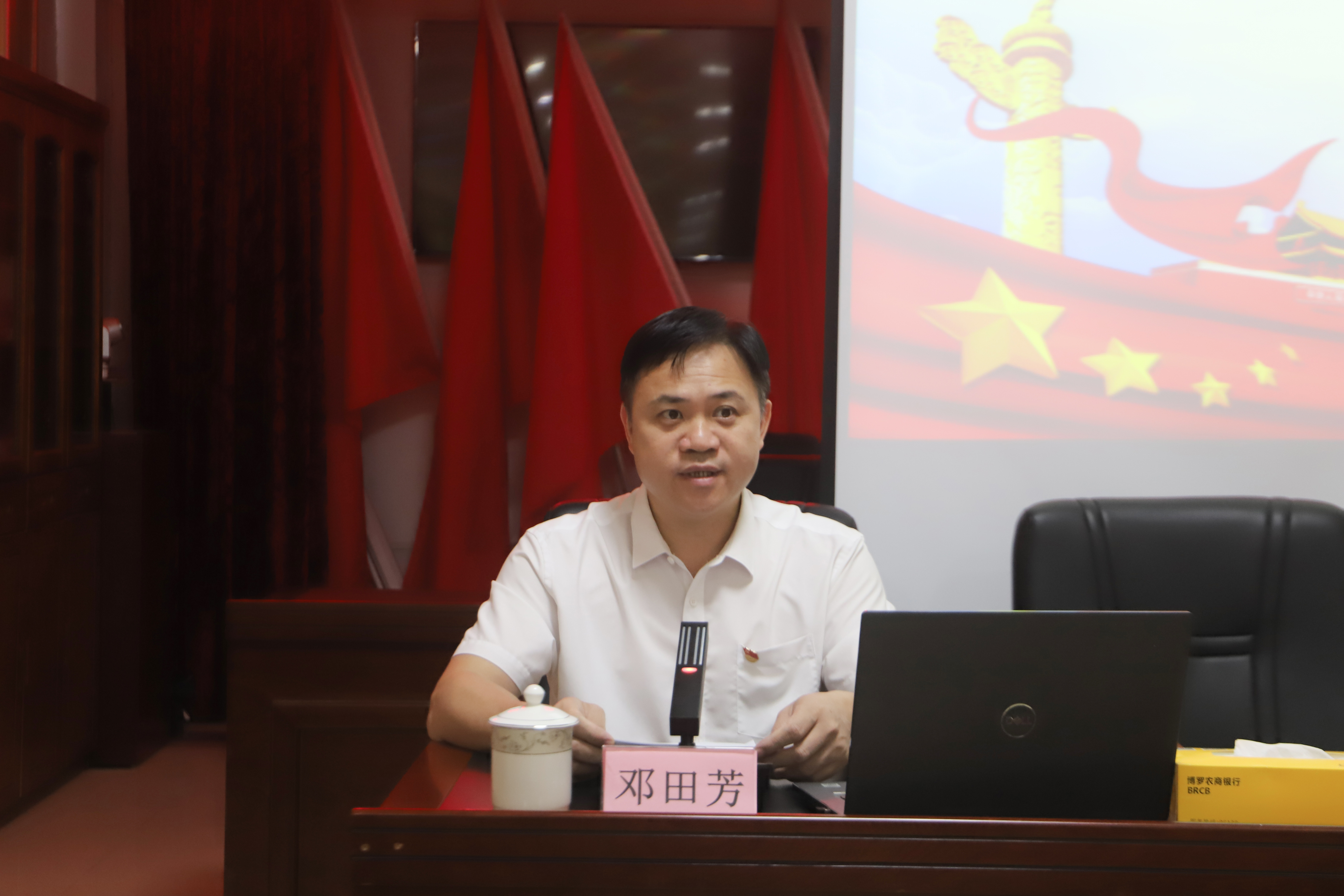 活動尾聲,在鄧田芳的帶領下全體黨員干部舉起右手,莊嚴地重溫入黨誓詞,“我志愿加入中國共產黨,擁護黨的綱領,遵守黨的章程,履行黨的義務……”黨員們莊嚴宣誓,用錚錚誓言彰顯永恒初心,牢記黨員意識,永葆黨員本色。