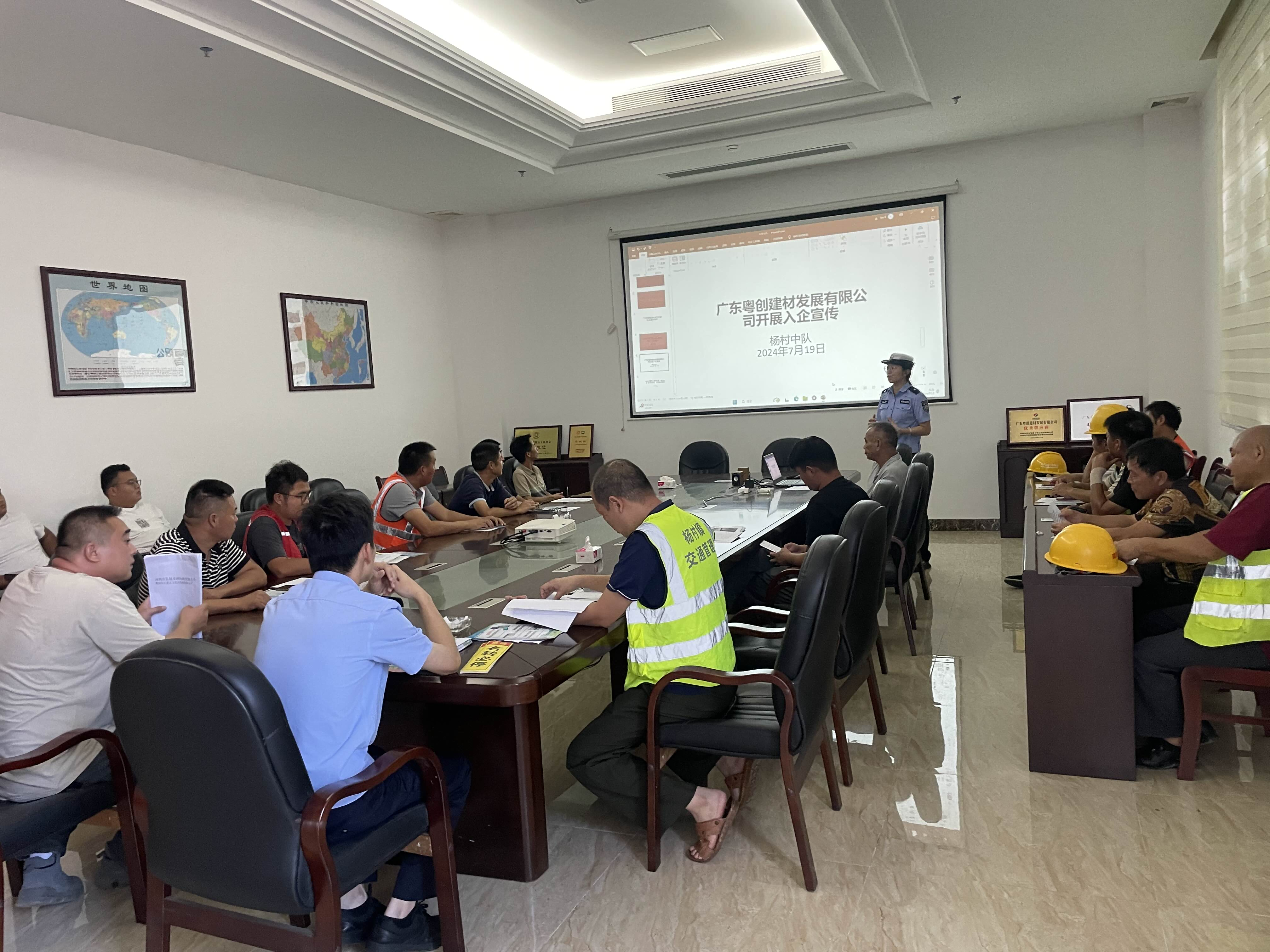為引導我鎮企業員工安全文明出行,進一步強化企業交通安全防范意識,增強交通參與者交通安全意識,7月12日,鎮交通運輸組聯合楊村交警中隊深入廣東粵創建材發展有限公司開展交通安全宣傳活動。