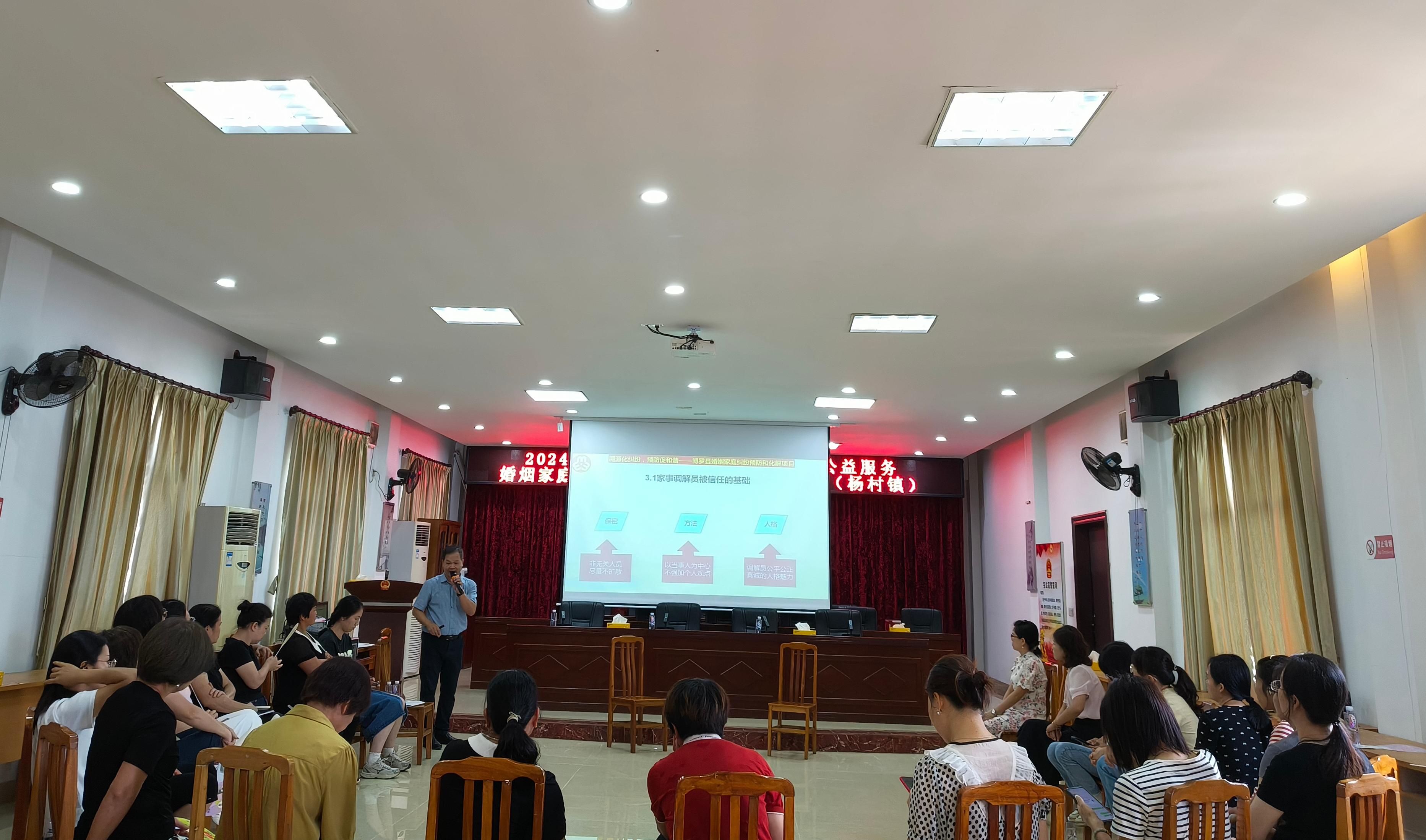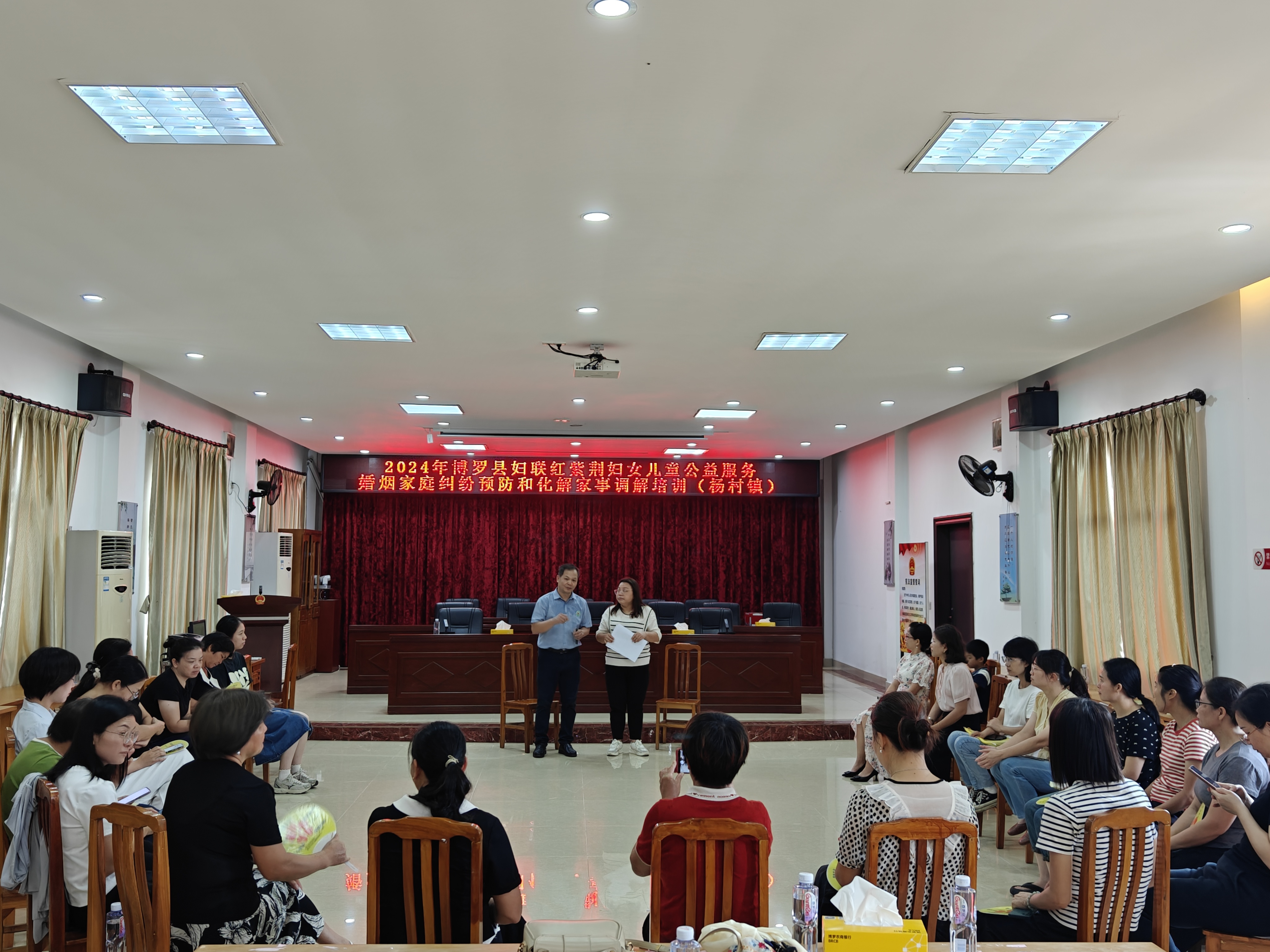 為進(jìn)一步提升基層?jì)D聯(lián)干部預(yù)防和化解婚姻家庭矛盾的能力,積極預(yù)防和化解婚姻家庭矛盾,促進(jìn)社會和諧穩(wěn)定,8月27日上午,博羅縣婦聯(lián)、楊村鎮(zhèn)婦聯(lián)在楊村鎮(zhèn)文化大樓四樓會議室開展婚姻家庭糾紛預(yù)防和調(diào)解培訓(xùn)講座。講座由惠州市樂陶心健康咨詢中心梁灼文老師主講授課,楊村鎮(zhèn)婦聯(lián)工作人員、楊村司法所人民調(diào)解員、各村(居)婦聯(lián)主席及有關(guān)部門單位負(fù)責(zé)婦聯(lián)工作人員等近30人參加了活動。