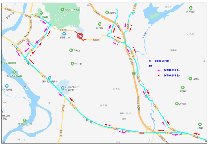 (一)廣汕公路、省道S122(原縣道X196)往東方職業技術學校或增城區二中方向的車輛提示:請繞行廣汕公路后通過增城經三路或增江大道南通行。