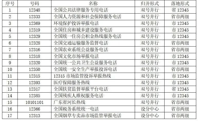 雙號并行保留號碼不保留話務座席的,話務座席整體并入12345熱線。