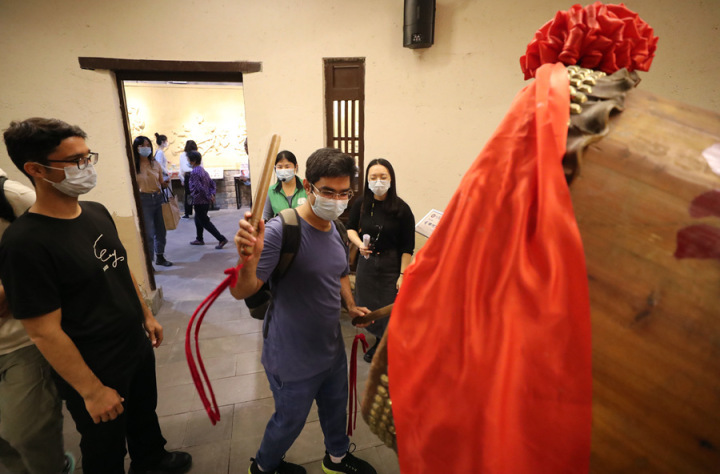 在客家婆景區,青年們參觀了客家往事館。引人入勝的古街場景,栩栩如生的人物塑像,生動有趣的故事講解,以直觀的形式展現了客家鄉風民俗,讓青年們全方位浸潤在源遠流長的客家文化中。