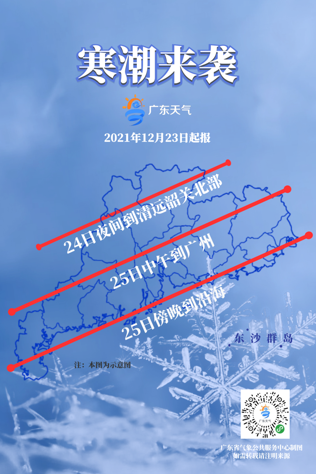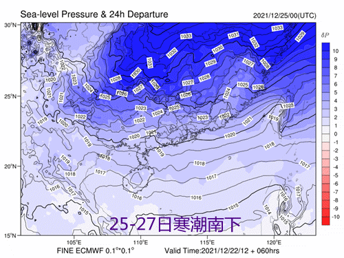 1.寒潮24日夜間入粵,25日自北向南影響廣東,26日-27日陰雨寒冷。