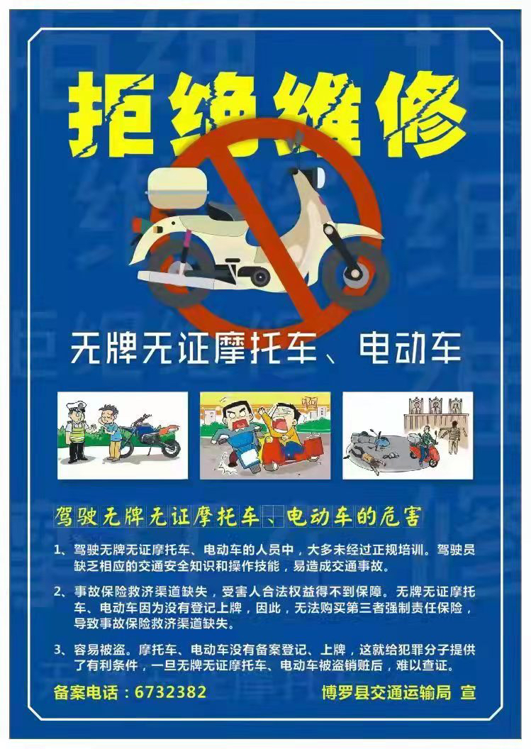 為進一步加強摩托車、電動自行車道路交通秩序管理,營造安全有序的道路交通環(huán)境,我縣將加大對無牌無證車輛的源頭管控,拒絕為其提供維修服務(wù)。在此,提醒廣大騎摩托車的小伙伴們,為了自身的生命安全,也為了他人的平安出行,一定要按規(guī)定考取機動車駕駛證、辦理機動車牌照,同時,在騎行過程中要戴好頭盔!