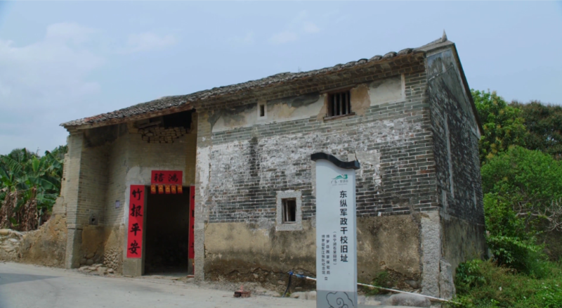 在長寧鎮瀾石村果園小組,鄧氏祠堂門口掛著東江縱隊軍政干校舊址的牌子。當年,東江縱隊在此成立抗日軍政干部學校,開展射擊、刺殺、投彈等大練兵運動,培養了大批軍政干部,村里的學員全部隨挺進粵北的部隊奔赴五嶺山區,成為開辟五嶺根據地的骨干。據當地村民鄧鏡忠回憶,當時村里住滿了東縱的老中青三代人,村民們還為革命隊伍送糧食、槍支等。
