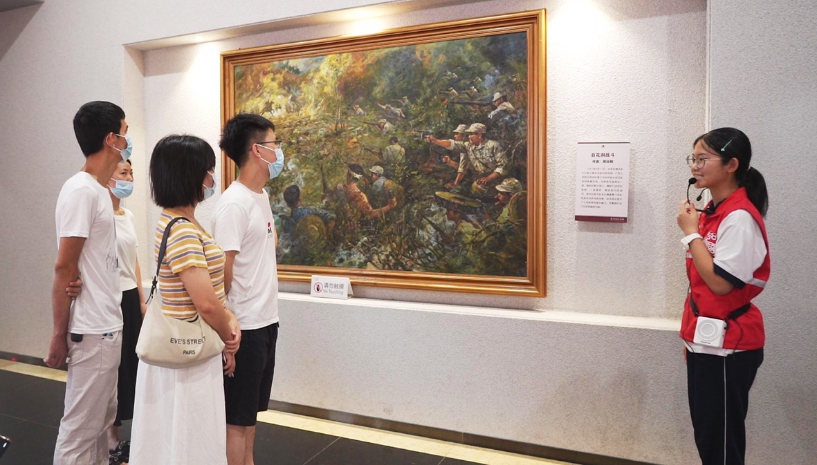 “在這艱難的關頭,中央組織在葫蘆島地區兩支人民抗日武裝。一支是惠寶人民抗日游擊總隊,曾生任總長;還有一支是惠寶人民抗日游擊大隊,王作堯任大隊長,這兩支隊伍是東江縱隊前身……”這是福田中學初一學生葉翠儀,正在向前來羅浮山東江縱隊紀念館參觀的游客,講解東縱的歷史。
