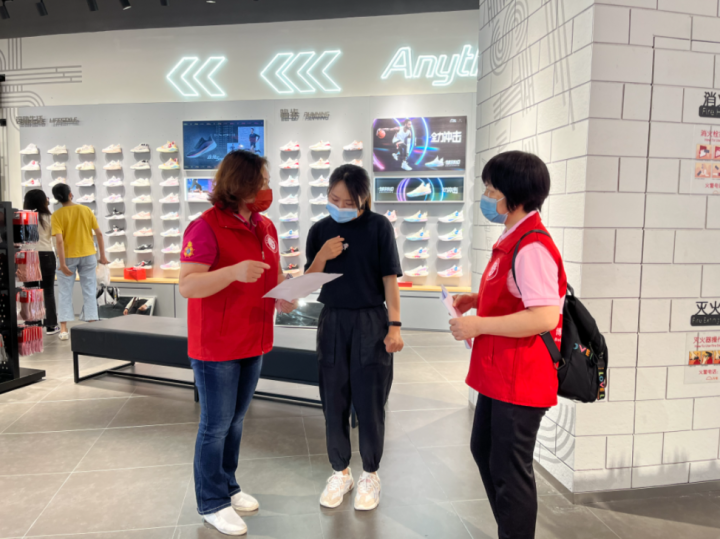 志愿者在商場內(nèi)開展“全民戴口罩 齊掃場所碼”疫情防控志愿服務活動。