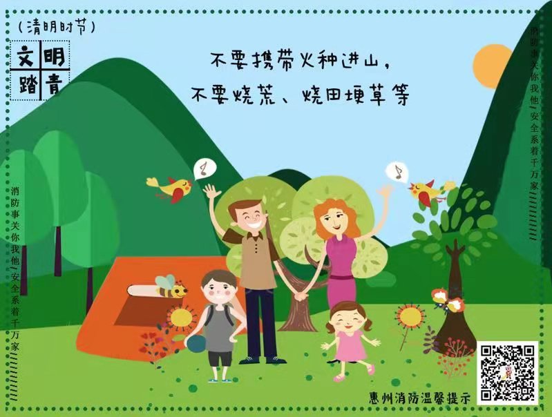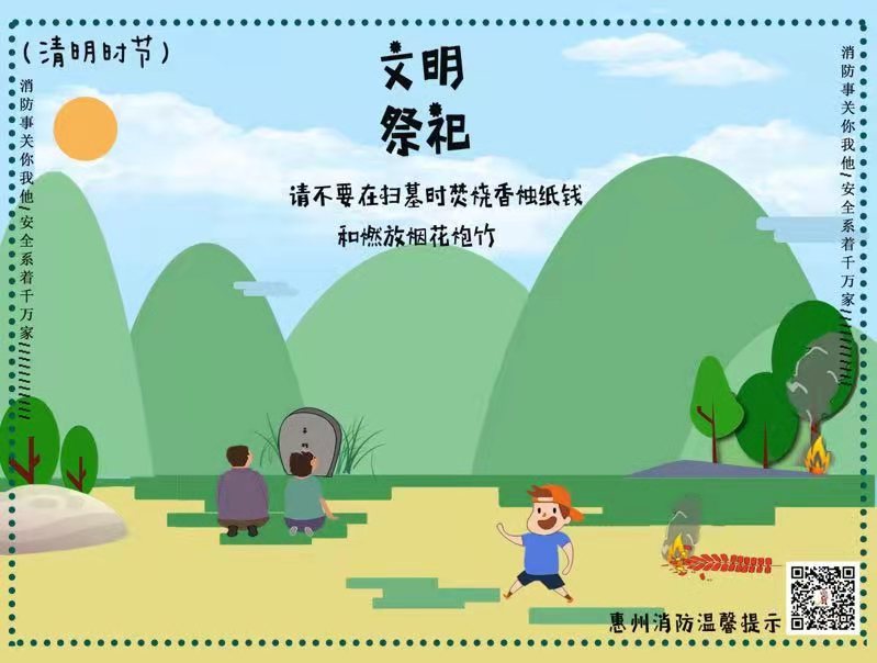 清明祭掃莫忘安全。以往清明祭掃期間也是交通事故和森林火災的多發期,對此,我們必須保持清醒認識和嚴格戒備,在祭祀故人時切勿忘了把安全放在首位,自覺維護祭掃場所的公共秩序,嚴格遵守交通出行規則和有關防火規定,不隨意停靠車輛,不攜帶火種和易燃易爆物品進入祭掃場所,自覺遵守疫情防控要求,盡量減少人員聚集,嚴防各類安全事故的發生。