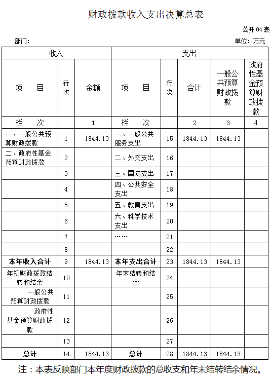 四、財政撥款收入支出決算總表