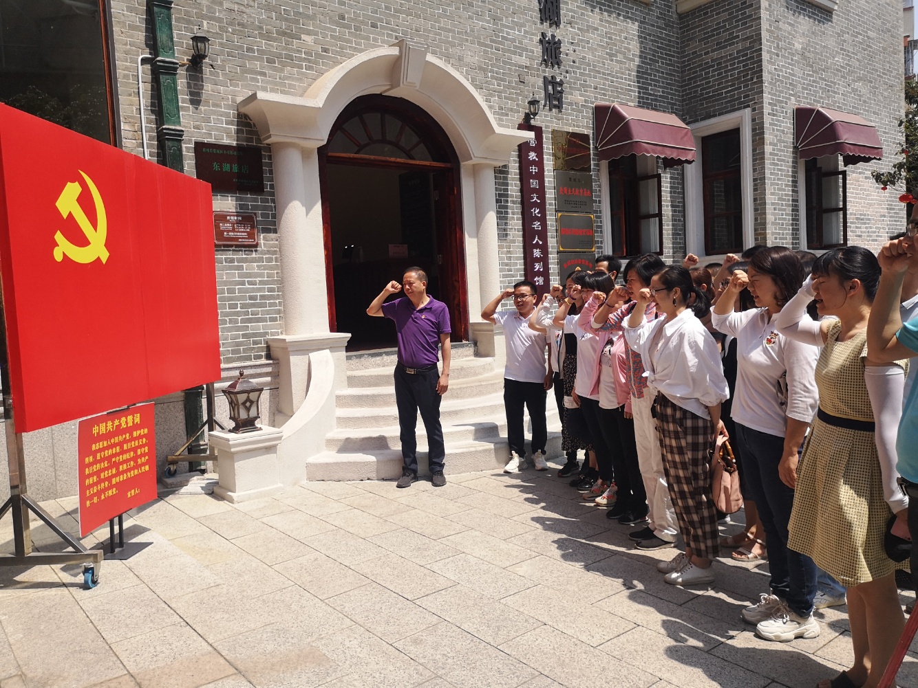 隨后,該中心黨員干部還先后來到惠州東湖旅店營救中國文化名人陳列館、鄧演達紀念園接受紅色革命教育,并組織黨員重溫入黨誓詞。參觀過程中,黨員干部們通過一個個紅色老物件,一段段革命歷史,重溫紅色記憶,傳承紅色基因,追憶入黨初心。