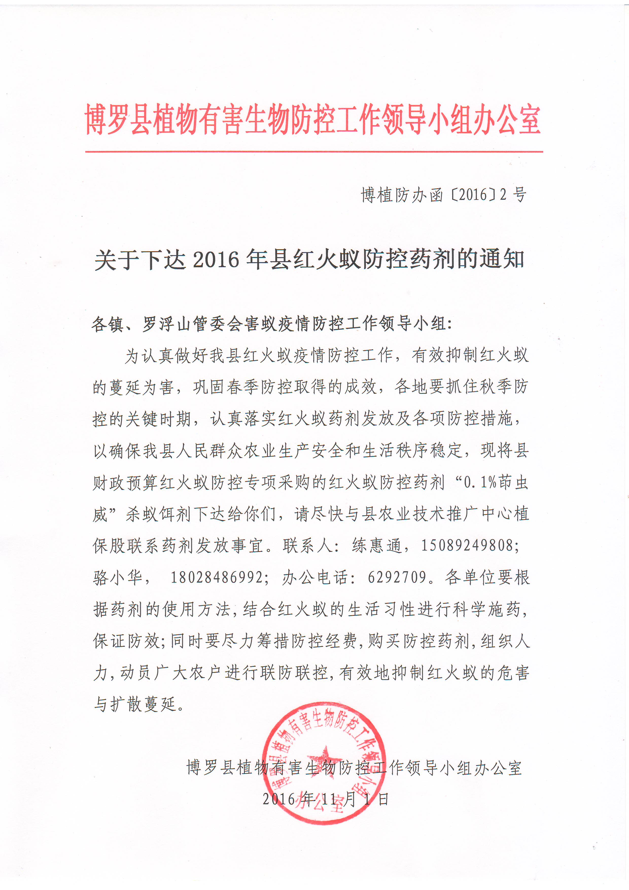 博植防辦函【2016】2號關于下達2016年縣紅火蟻防控藥劑的通知.JPG