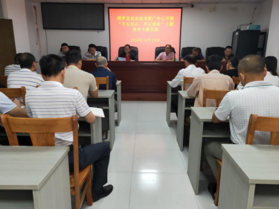 為進一步推進“不忘初心、牢記使命”主題教育縱深發展,鞏固主題教育成效,10月24日下午,博羅縣農業技術推廣中心開展“不忘初心、牢記使命”主題教育專題黨課。中心全體在職黨員參加學習,黨組書記、主任趙春艷同志主持會議。