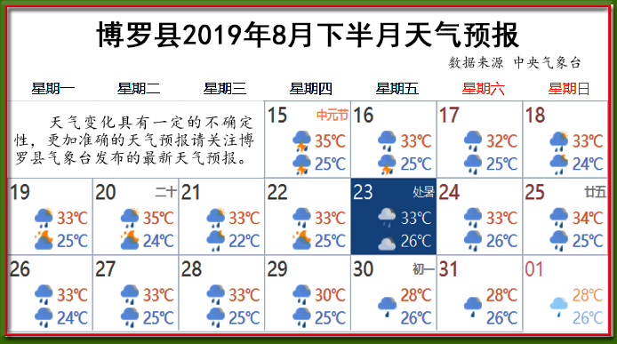 本期(8月16日—8月31日)氣溫22~35℃,晝夜溫差較大,雷雨頻繁,天氣復(fù)雜多變,敬請根據(jù)縣氣象臺發(fā)布的最新天氣預(yù)警信息做好農(nóng)業(yè)生產(chǎn)安排。