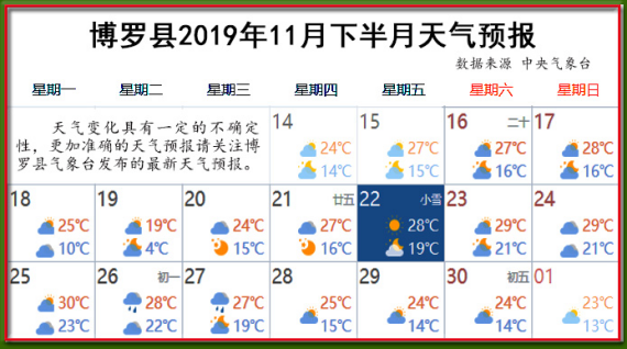 16到30號天氣以多云為主,氣溫14-30℃,晝夜溫差較大?。具體天氣預報請密切留意縣氣象臺發布的信息,根據天氣情況合理安排生產作業。