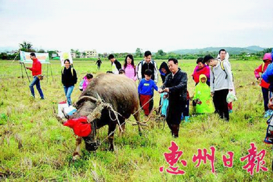 3月25日,游客在博羅縣觀音閣鎮彭村村農田里扶犁翻地體驗春耕。春耕意味著一年農事勞作的開始,也意味著播種新的希望。當日,該村舉行的體驗春耕活動吸引了一批深圳游客,許多家長帶著小孩興致勃勃地摩拳擦掌下田“務農”,并在村民指導下爭相扶犁犁地,體驗春耕樂趣,感受農耕的不易。