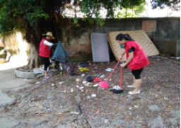7月10-14日,我中心領導趙春艷、盧美成帶隊,組織工作人員200多人次到無物業公司管理的居民矮嶺小區進行環境整治行動,為創文增添力量。行動中共發放宣傳單張100余張,清理區內堆放的生活、建筑垃圾及雜草10余車,整治效果明顯,確保了本區域居民聚集區整體環境衛生干凈整潔。