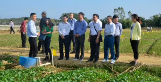 在博羅縣農業科技示范場(航天農業育種示范基地),代表團一行參觀考察了廣東省蔬菜病蟲害綠色防控示范區和航天蔬菜病蟲害綠色防控示范區,對該示范區的農業自動氣象墑情監測站、物理防控技術、水肥一體化技術及優新農產品產生了深厚的興趣。