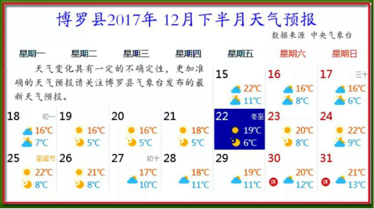 冬至前后農(nóng)業(yè)生產(chǎn)管理要點(diǎn) 一、本期天氣預(yù)報(bào) 16 到31 號晴天為主,氣溫5-22℃,晝夜溫差較大。請關(guān)注縣氣象臺發(fā)布的最新天氣預(yù)報(bào),根據(jù)實(shí)際天氣情況安排農(nóng)業(yè)生產(chǎn)。