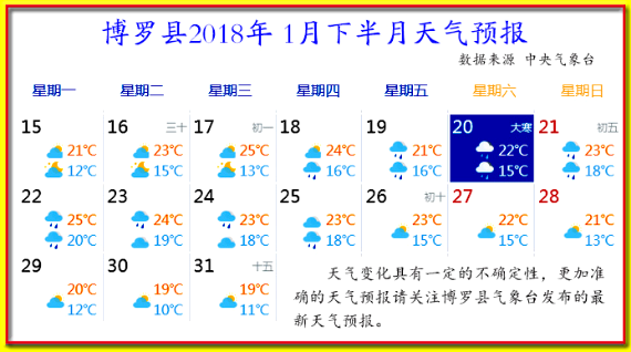 1月20日大寒,氣溫10—25℃,晝夜溫差較大。請關注縣氣象臺發布的最新天氣預報,根據實際天氣情況安排農業生產。