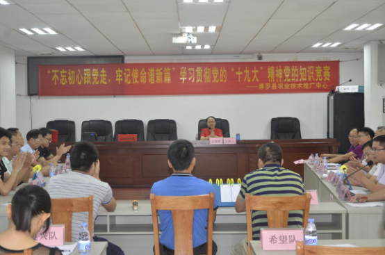 為進(jìn)一步深入學(xué)習(xí)貫徹黨的十九大精神,用黨的十九大精神統(tǒng)一思想、凝聚力量、推動(dòng)發(fā)展,持續(xù)推動(dòng)學(xué)習(xí)貫徹習(xí)近平新時(shí)代中國特色社會(huì)主義思想走向深入。6月21日下午,博羅縣農(nóng)業(yè)技術(shù)推廣中心在二樓會(huì)議室開展以“不忘初心跟黨走,牢記使命譜新篇”為主題的黨的知識(shí)競(jìng)賽活動(dòng)。