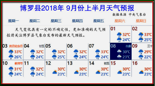 9月8號白露,1號至15號氣溫22到33℃,天氣仍然復雜多變,請密切關注縣氣象臺發布的最新天氣預警信息安排農業生產。
