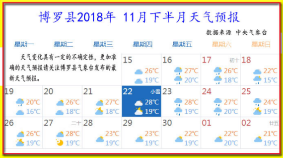 16到30號(hào)天氣以陰天和小到中雨為主,后期受冷空氣影響,有明顯大風(fēng)降溫過(guò)程。氣溫15~28℃,晝夜溫差較大。更加準(zhǔn)確的天氣預(yù)報(bào)請(qǐng)關(guān)注縣氣象臺(tái)發(fā)布的最新天氣預(yù)報(bào)。