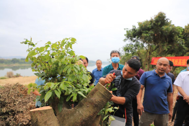 為讓學員們能快速學以致用,當天的培訓還組織了嫁接現場觀摩會,博羅縣雅時園荔枝稀有品種農民專業合作社負責人陳偉清根據多年荔枝種植、嫁接的實踐經驗,現場就如何挑選枝干、修枝整形、選接位、做接口、切接穗、放接穗、綁帶固定和露苗管理等關鍵環節,逐一進行深入淺出地詳細講解,將嫁接方法向參加培訓的學員進行示范操作,并現場解答荔枝種植戶學員在荔枝嫁接過程中遇到的難點問題。