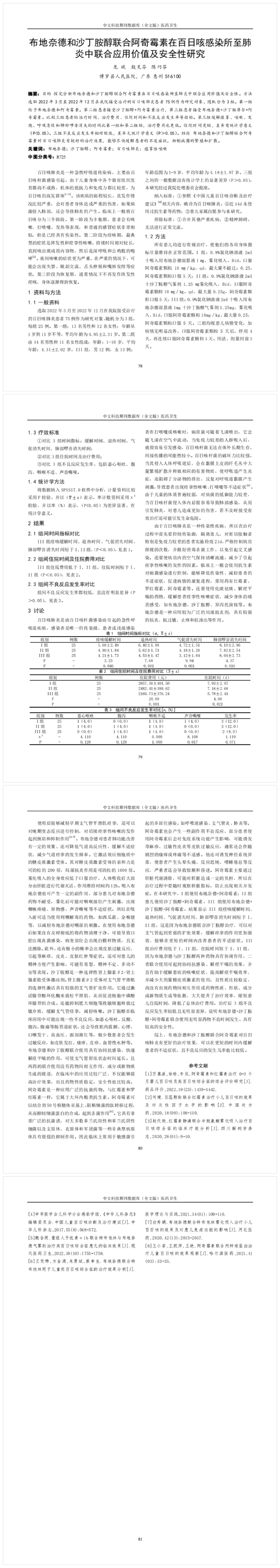布地奈德和沙丁胺醇聯(lián)合阿奇霉素在百日咳感染所至肺炎中聯(lián)合應(yīng)用價值及安全性研究