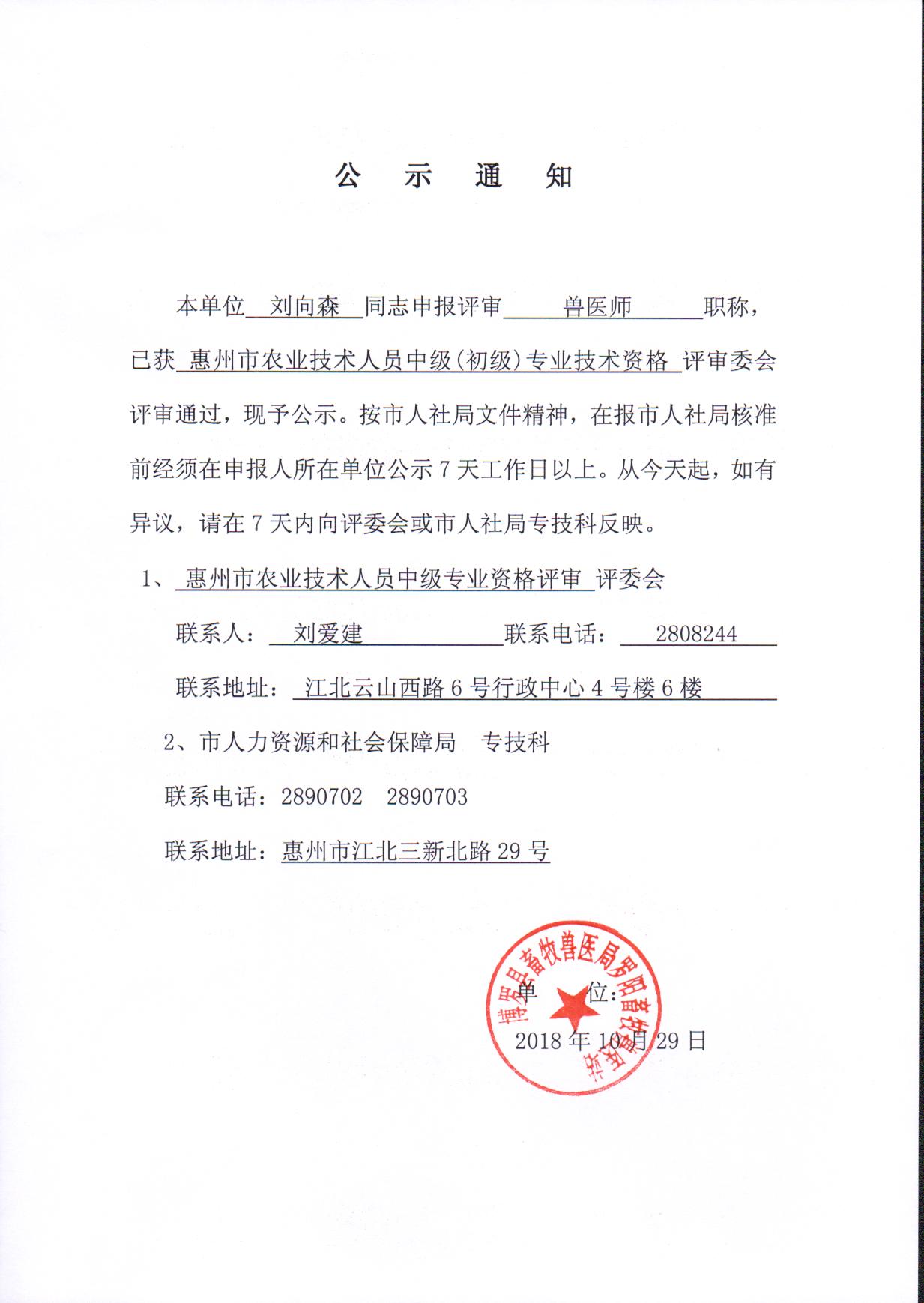 公示通知(劉向森)