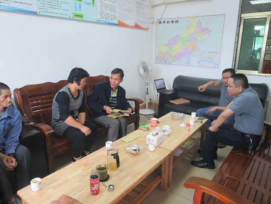 村“兩委”負責同志對扶貧工作小組成員的到來表示熱烈歡迎,表達了對以習近平同志為核心的黨中央設立精準扶貧、精準脫貧等眾多普惠政策幫扶貧困人民走向小康生活的高度贊揚和擁護,并表示在省、市、縣、鎮各級黨委、政府的正確領導下,觀音閣鎮砂嶺村“兩委”干部積極作為,動員貧困戶們重拾信心、斗志昂揚,并感謝了博羅縣畜牧獸醫局全體干部職工長期以來對本村脫貧工作的關心和支持,一同促使貧困戶在本地安居樂業,走向幸福。