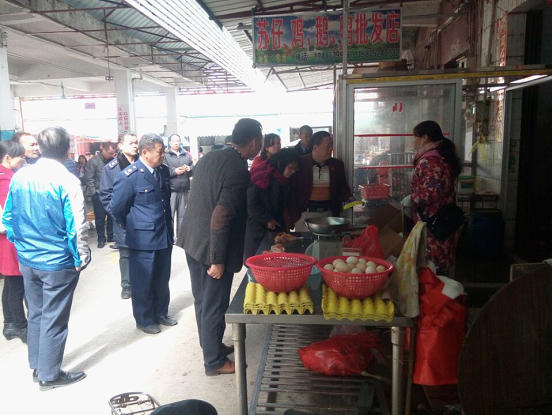 督查小組在柏塘鎮活禽交易市場檢查當地H7N9等流感防控工作情況