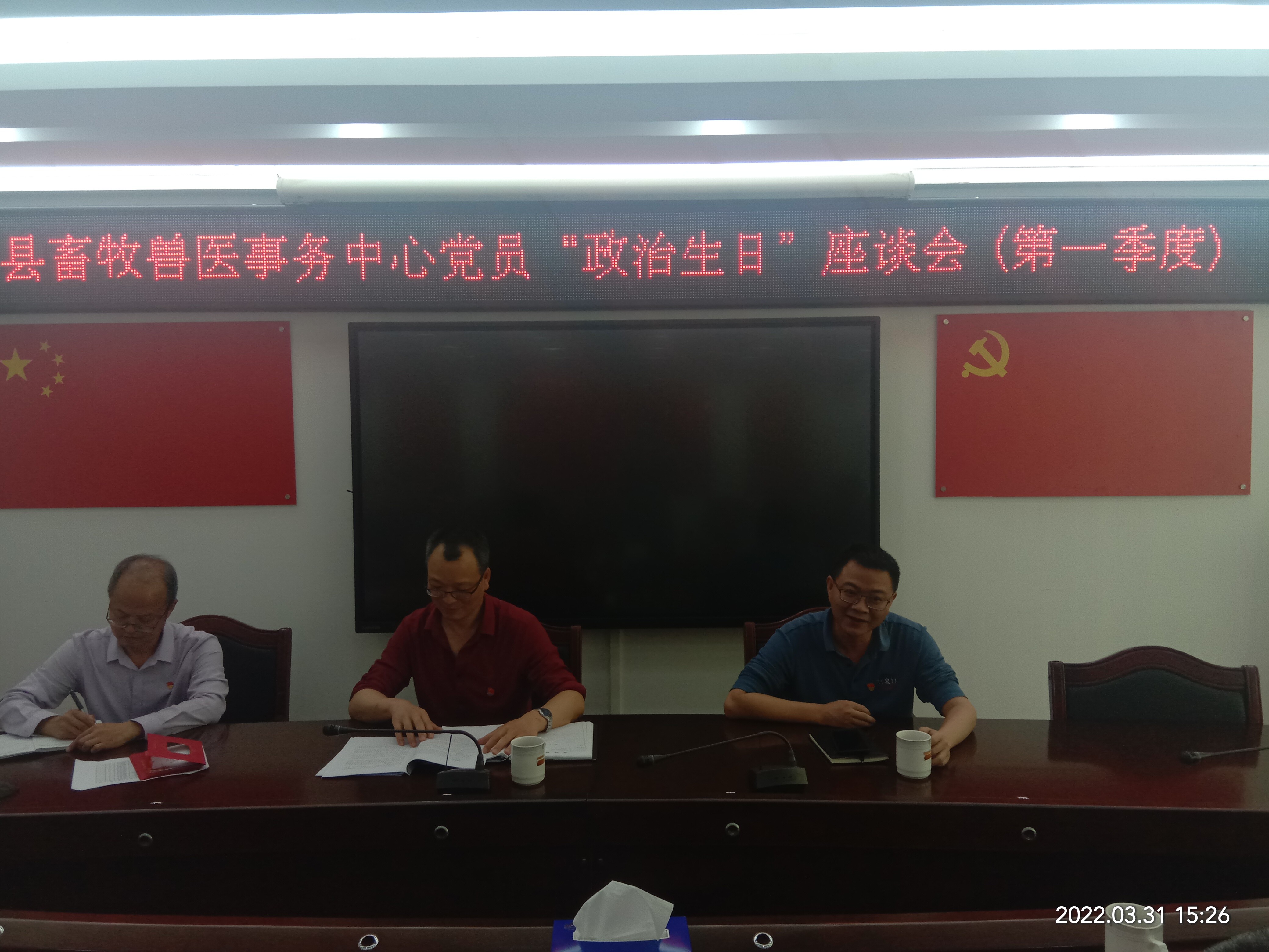 座談會由畜牧獸醫(yī)事務(wù)中心黨組副書記、副主任蘇東祥同志主持。蘇東祥同志首先組織過政治生日的黨員學習了習近平總書記《繼續(xù)發(fā)揚歷史主動精神,以實際行動迎接黨的二十大勝利召開》的講話精神和《關(guān)于在全市推行黨員“政治生活”制度的通知》的內(nèi)容,然后為黨員贈送了政治生日賀卡,組織黨員重溫了入黨誓詞,最后與過政治生日的黨員開展了一次談心談話。