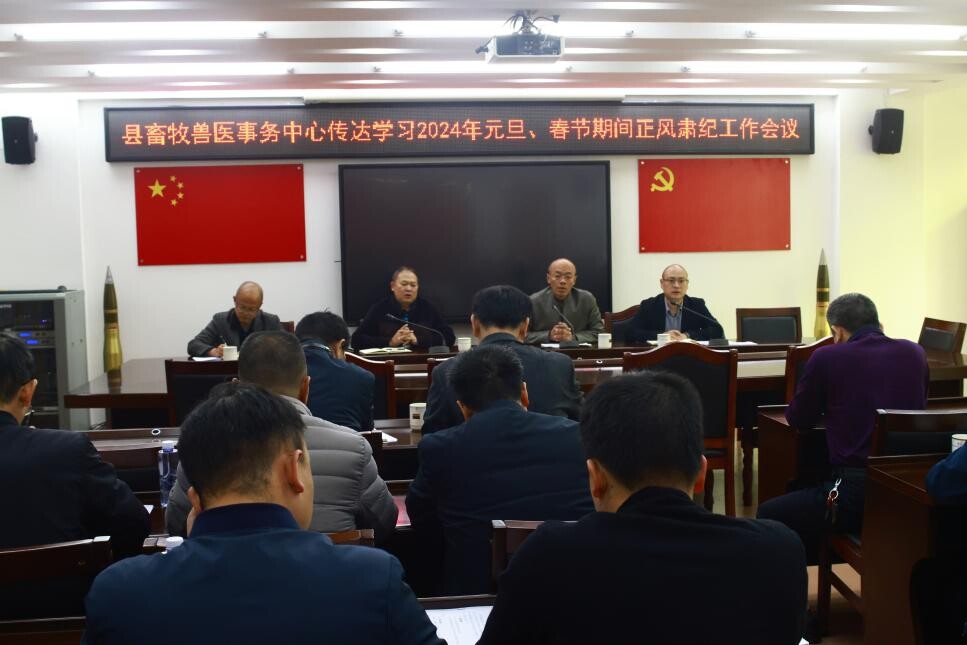 為強化正風肅紀,鍥而不舍落實中央八項規定精神,營造風清氣正的節日氛圍,近日,縣畜牧獸醫事務中心在中心三樓會議室召開2024年元旦、春節期間正風肅紀工作會議。