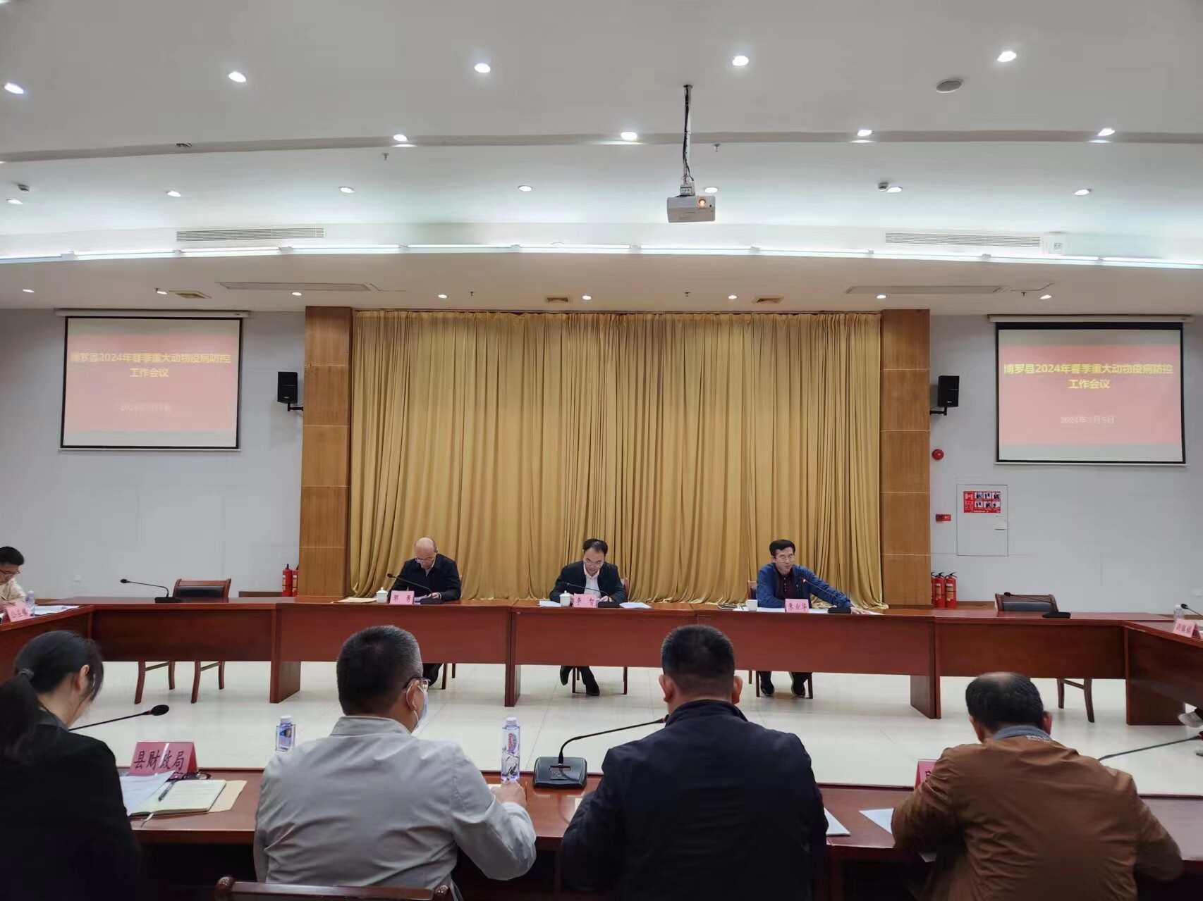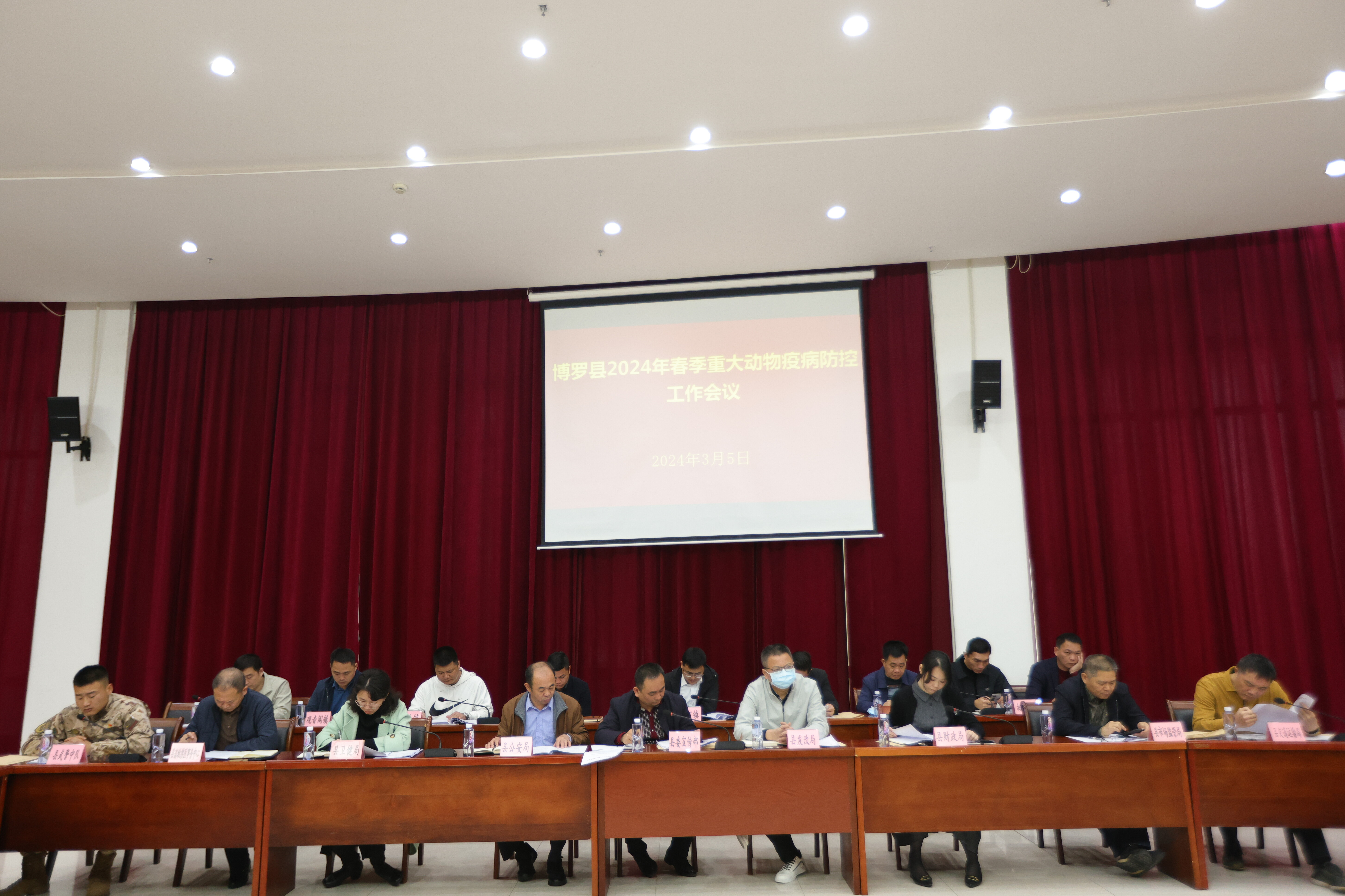 2024年3月5日,博羅縣召開2024年春季重大動物疫病防控工作會議,李智副縣長、縣政府辦副主任朱業華、各鎮政府(街道)分管畜牧獸醫的領導和畜牧獸醫站負責人、縣畜牧獸醫事務中心等縣防制重大疫病指揮部成員單位分管領導共50人參加會議,會議由朱業華副主任主持。