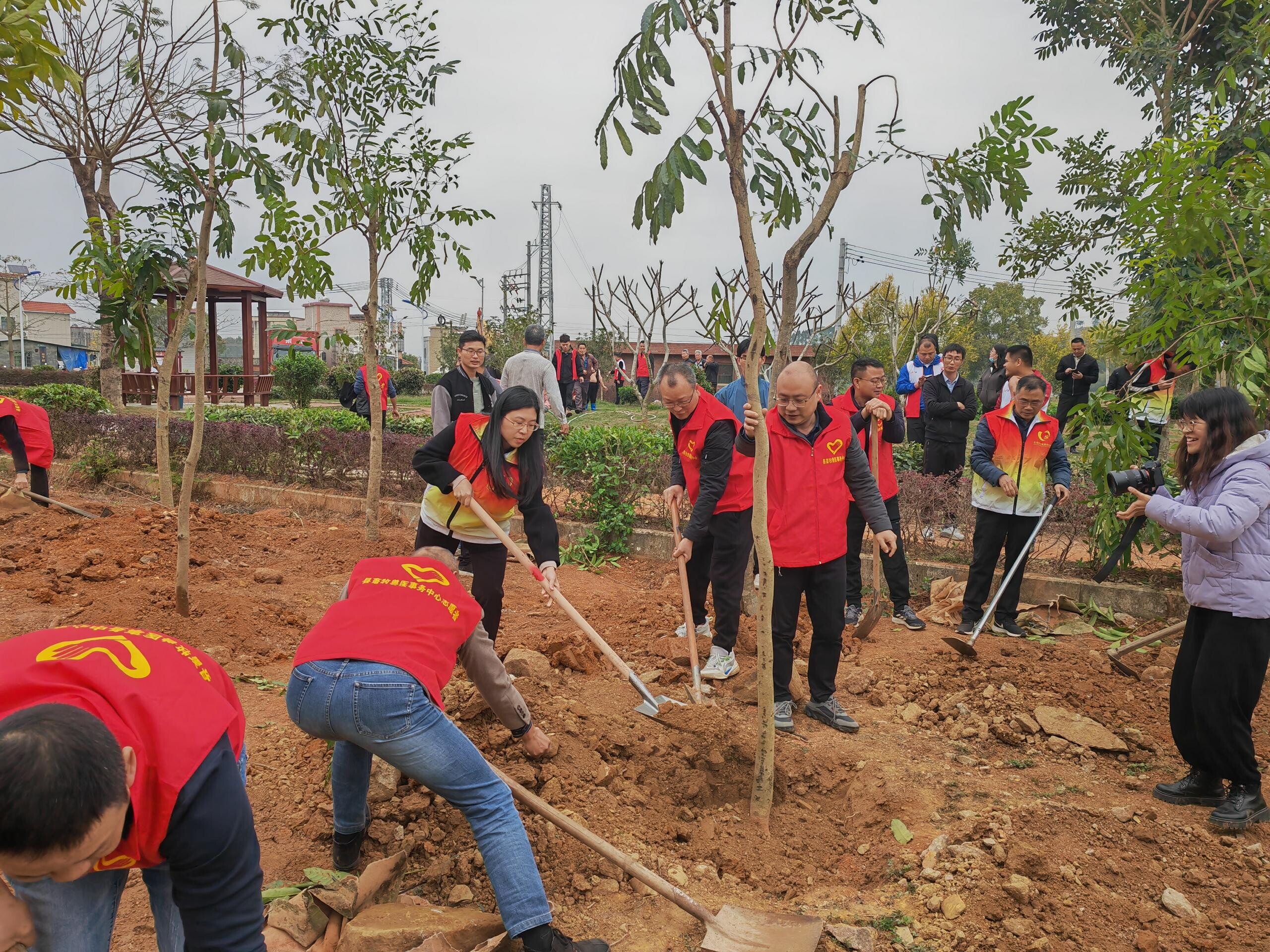 植樹過程中,大家干勁十足、團結協作,揮鍬鏟土、扶正樹苗、培土澆水,2個多小時過去,一棵棵生機盎然的樹苗亭亭而立,為春光增添了一抹新綠。