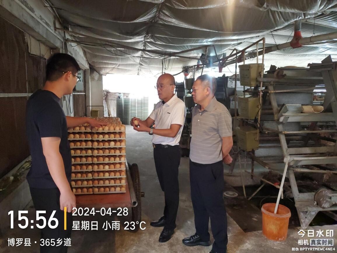 4月28日,博羅縣畜牧獸醫事務中心主任鄒勇和副主任劉少球前往養殖場指導企業開展防汛救災、動物防疫工作。他們深入養殖區,詳細了解了養殖場的防洪設施準備情況,并對可能出現的風險點進行了細致排查。