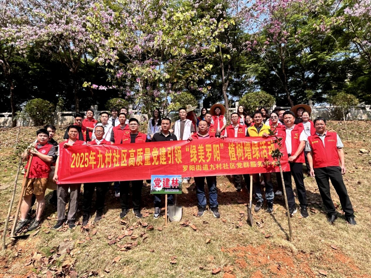 經過共同努力,中心黨員干部與九村社區志愿者共同種下“黨建林”,新種樹苗整齊排列,為社區增添新的生機與綠意。