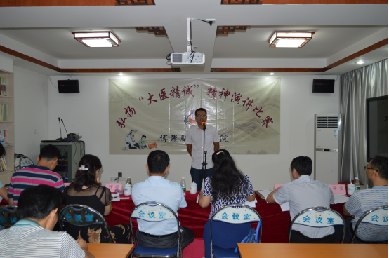 為弘揚“大醫(yī)精誠”精神,進一步提高醫(yī)療服務(wù)能力和水平,打造中醫(yī)藥文化氛圍,深入貫徹實施廣東省中醫(yī)藥強省戰(zhàn)略,我院于7月28日下午舉行了弘揚“大醫(yī)精誠”精神為主題的演講比賽。同時邀請了縣衛(wèi)計局領(lǐng)導(dǎo)、醫(yī)院領(lǐng)導(dǎo)、各科室負(fù)責(zé)人及部分醫(yī)護人員到場觀看了比賽。