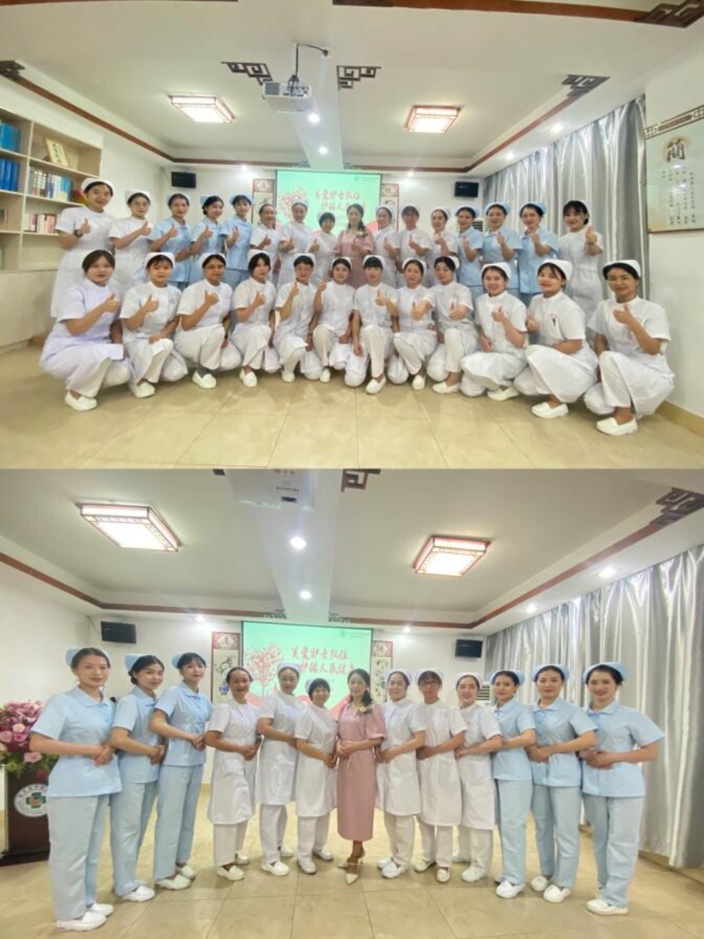 “關愛護士隊伍,護佑人民健康”。為慶祝第111個“5.12”國際護士節,傳承南丁格爾精神,展示新時期護理人員“團結、拼搏、積極、快樂”的精神風貌,增強醫院的凝聚力和向心力。5月12日下午3時,我院在六樓會議室舉行5.12國際護士節慶?;顒印at院領導班子、科室護士長、受表彰的個人及護士代表約50余人參加活動,活動由醫管會委員陳獻主持。