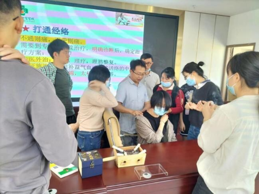培訓班上,縣中醫院治未病科主任鐘卓寧用通俗易懂的語言和生動鮮活的事例開展宣傳宣講,深入淺出地為學員們講解了有關脊柱健康的知識,指導如何預防、治療、判斷青少年脊柱側彎等,并在課堂上帶領全體學員一起做脊柱健康操。同時,我院醫療志愿服務隊為學員提供艾灸、火龍罐等養生體驗。