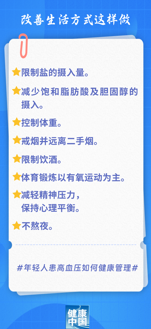 我們?cè)诖肃嵵睾粲酰贻p人要關(guān)心自己的身體健康,重視血壓監(jiān)測(cè);養(yǎng)成良好的生活方式,管理好血壓;遵醫(yī)囑服用藥物,把血壓控制在目標(biāo)值以內(nèi),降低心腦血管疾病患病率,盡早迎來(lái)我國(guó)心腦血管疾病的防治拐點(diǎn)。