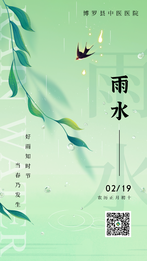 雨水,立春以后的第二個節氣,在每年的2月19日前后,太陽到達黃經330度。此時,氣溫回升、降水增多,故取名“雨水”。《月令七十二候集解》道“正月中,天一生水。春始屬木,然生木者必水也,故立春后繼之雨水。且東風既解凍,則散而為雨矣。”
