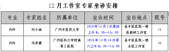 【出診通知】 劉小斌醫教研工作室及馮崇廉名醫工作室12月坐診安排