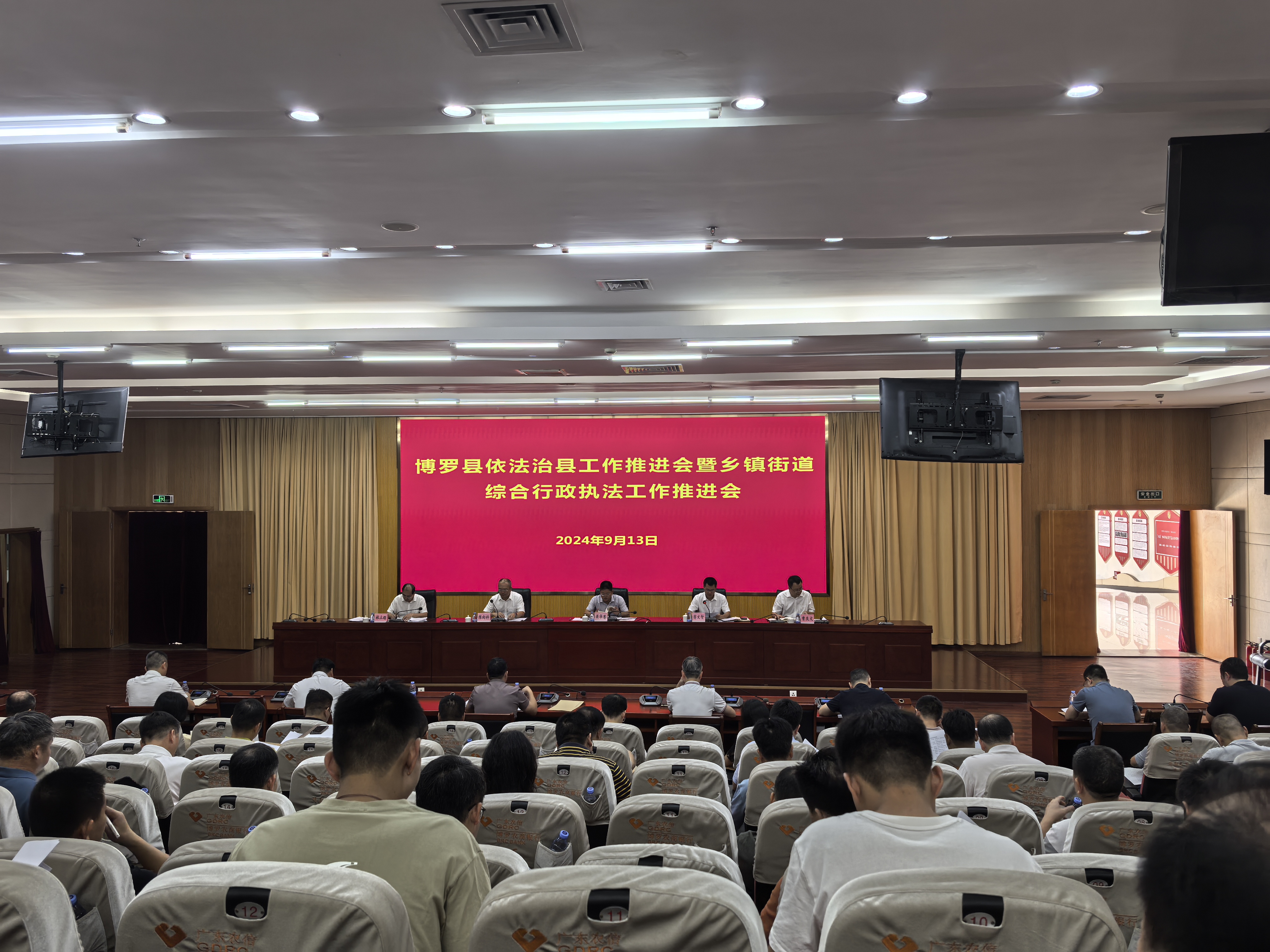 9月13日,博羅召開全縣依法治縣工作推進會暨鄉鎮街道綜合行政執法工作推進會。縣委副書記、政法委書記、縣委依法治縣辦主任梁華騫,副縣長、縣公安局局長翁文智,縣人民法院院長陳向科,縣人民檢察院檢察長曾慶文,縣委依法治縣辦副主任、縣司法局局長林立領以及縣紀委監委、縣委辦、縣政府辦等39個縣直單位和駐博單位有關領導,以及17個鄉鎮(街道)黨政主要負責人、分管政法副書記(綜合行政執法隊隊長)、綜合行政執法隊常務副隊長等人員參加會議。