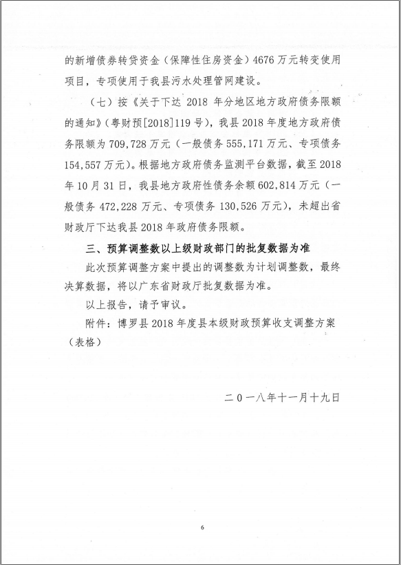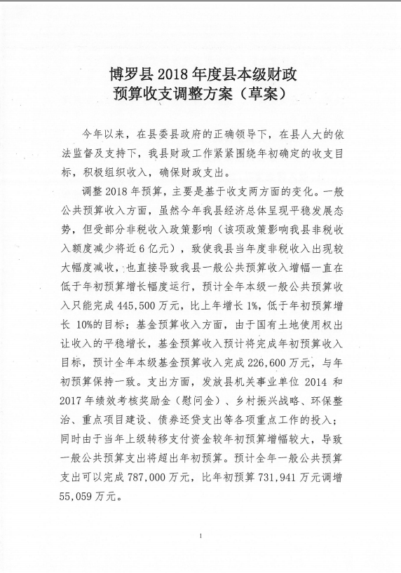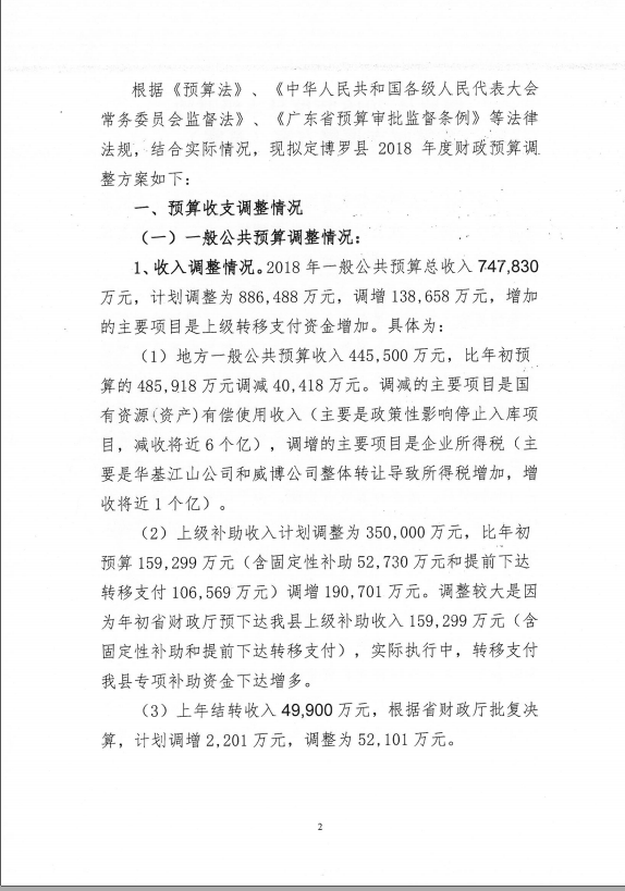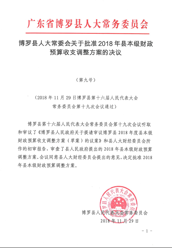 博羅縣人大常委會關于批準2018年縣本級財政收支調整方案的決議