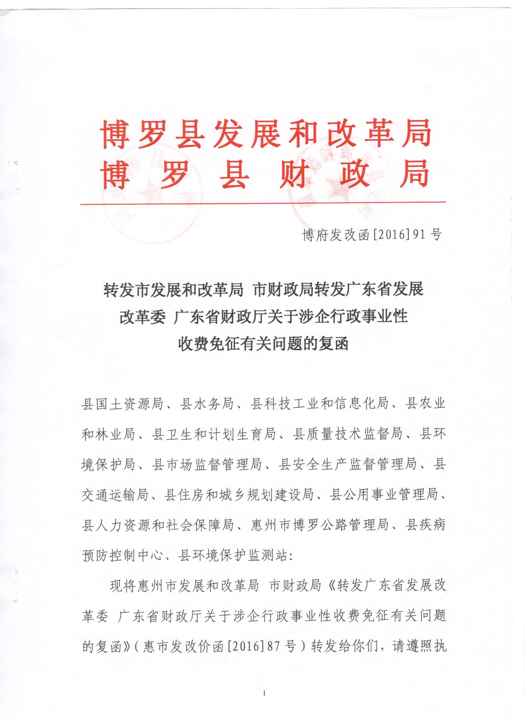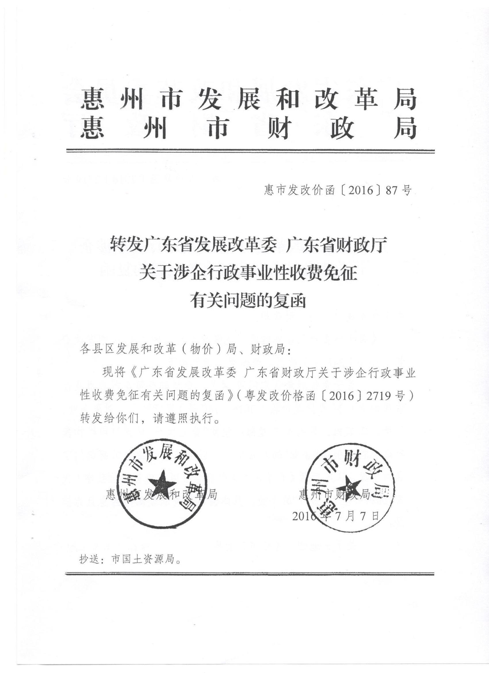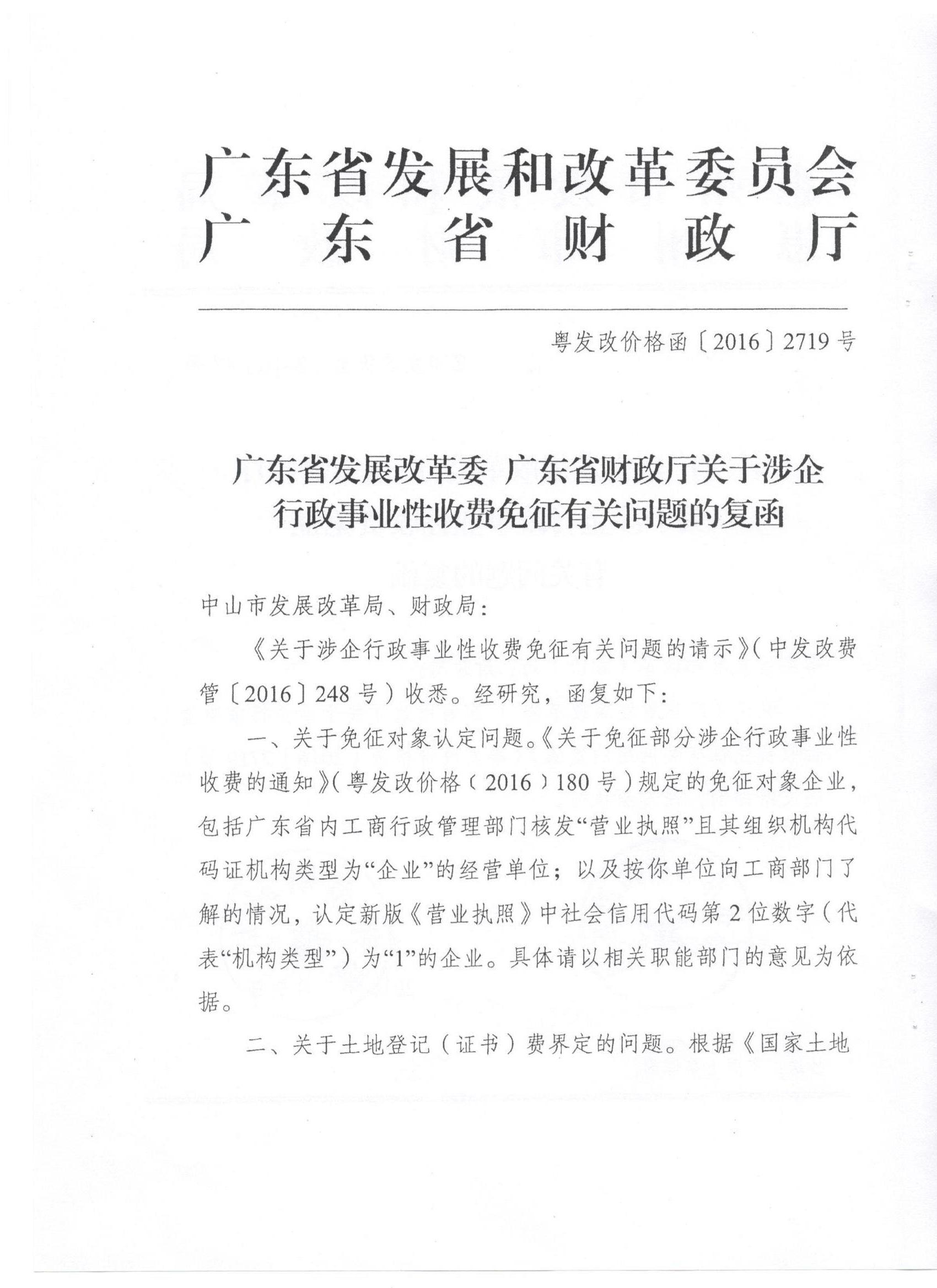 廣東省財政廳關于涉企行政事業性收費免征有關問題的復函