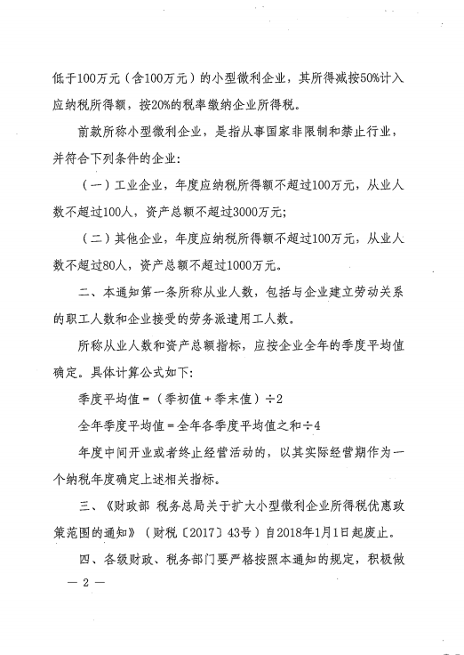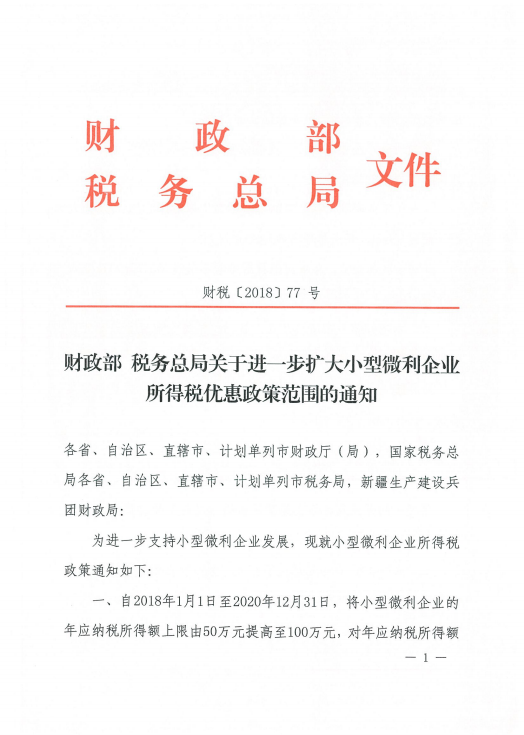 財政部 稅務總局關于進一步擴大小型微利企業所得稅優惠政策范圍的通知