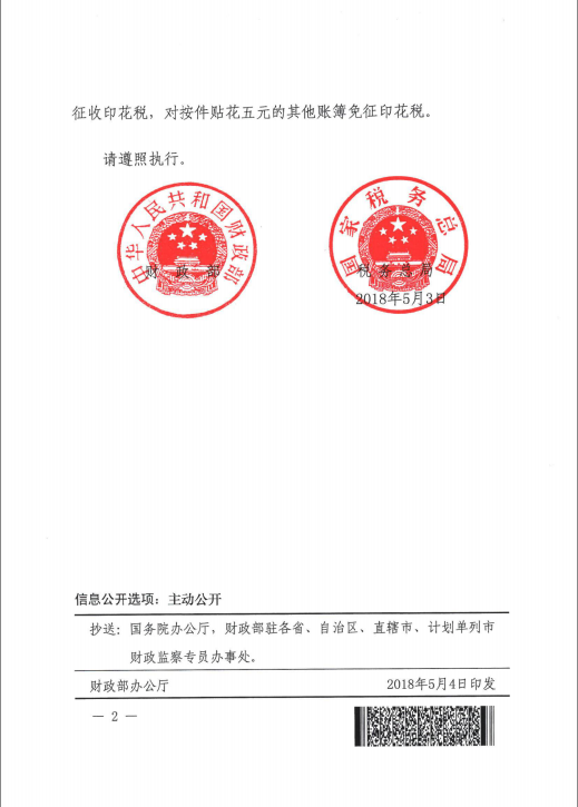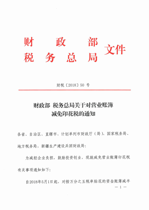 財(cái)政部 稅務(wù)總局關(guān)于對(duì)營(yíng)業(yè)賬簿減免印花稅的通知