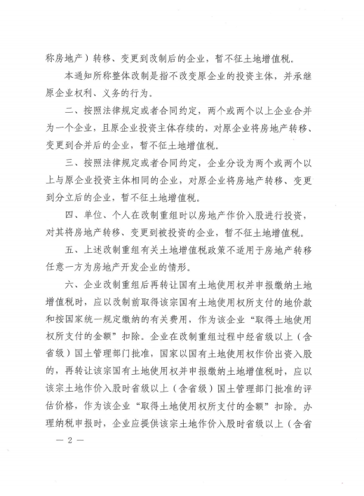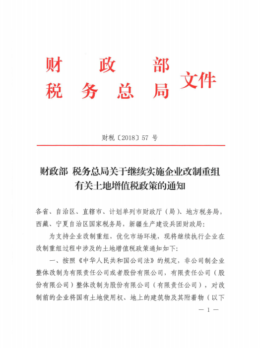財政部 稅務總局關于繼續實施企業改制重組有關土地增值稅政策的通知
